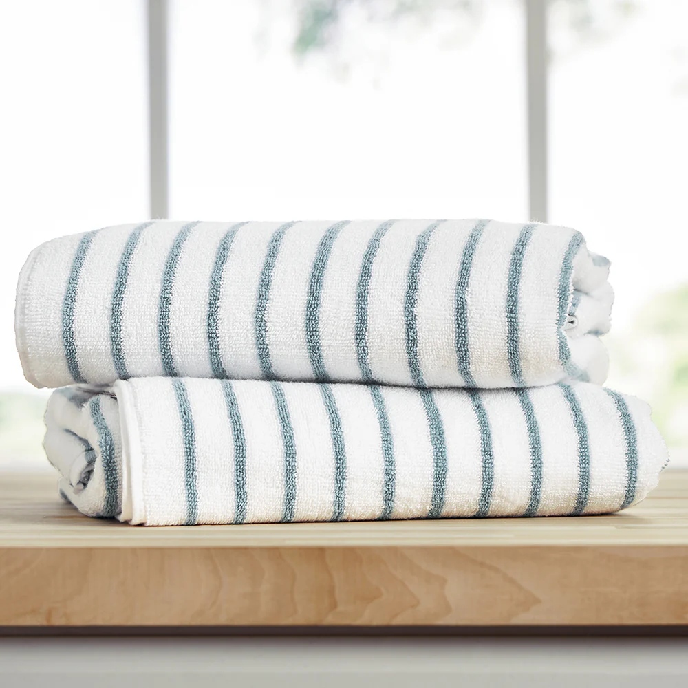 Elevate your beach and pool experience with our Cabana Stripe Beach & Pool Towel Sets, designed for ultimate comfort. Crafted from 100% ring spun cotton, these beach towels boast a luxurious weight of 450 GSM, offering superior softness and excellent absorbency. Whether you're lounging by the pool or soaking up the sun at the beach, our Cabana Beach Towels are the perfect choice. Available in convenient sets of 2 or 4, our towels ensure you always have enough to share with friends and family. Enjoy the perfect combination of style, comfort, and durability with these premium beach towels, crafted to enhance your summer days at the beach or pool.