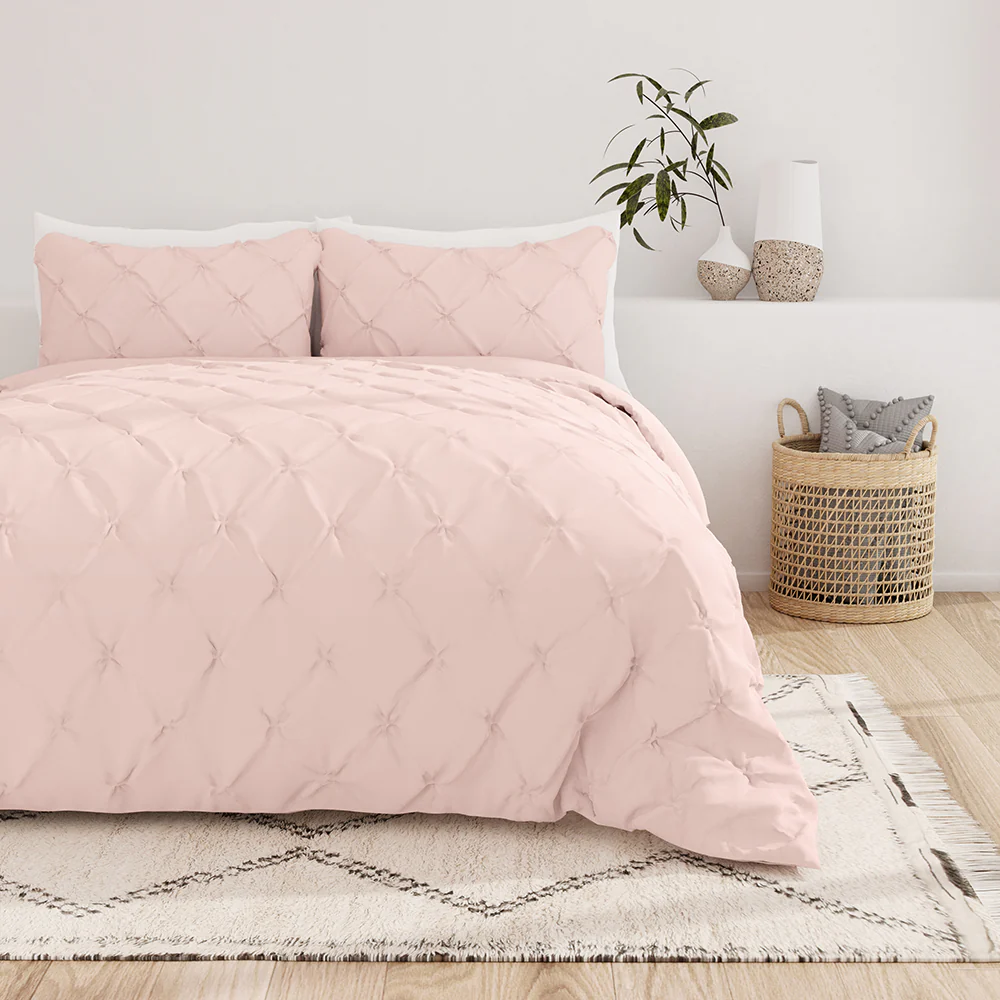 Give your old comforter or duvet insert a refreshing new look with this pinch pleat duvet cover set. This elegant design features premium yarns that are twice as durable as cotton, wrinkle resistant and double-brushed for a super soft, comfortable feel.