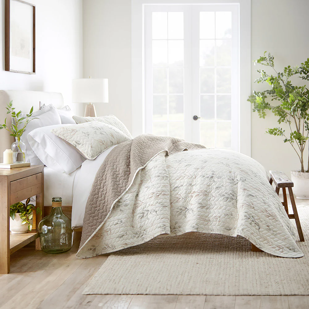 Watercolor Leaves Reversible Quilted Coverlet Set